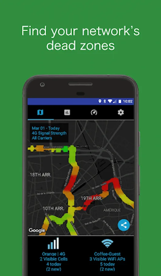 - Uses accurate WiFi and cell signal strength readings from your phone