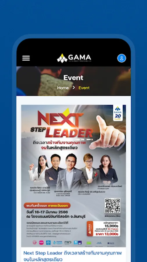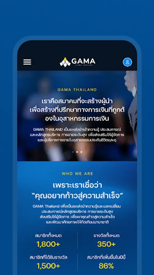 The Association of Life Insurance Executives and Financial Advisors (GAMA Thailand) was established with the support of GAMA Global with the objective to enable the association to It is a center of knowledge, experience, and courses for senior executives. Professional team building and management To encourage executives in the life insurance industry and financial advisors in Thailand Able to develop potential to be equal to international standards In the past, the association has focused on organizing training and academic seminars on courses or topics that are beneficial to members and life insurance business executives and financial advisors. both in Bangkok and regions continuously