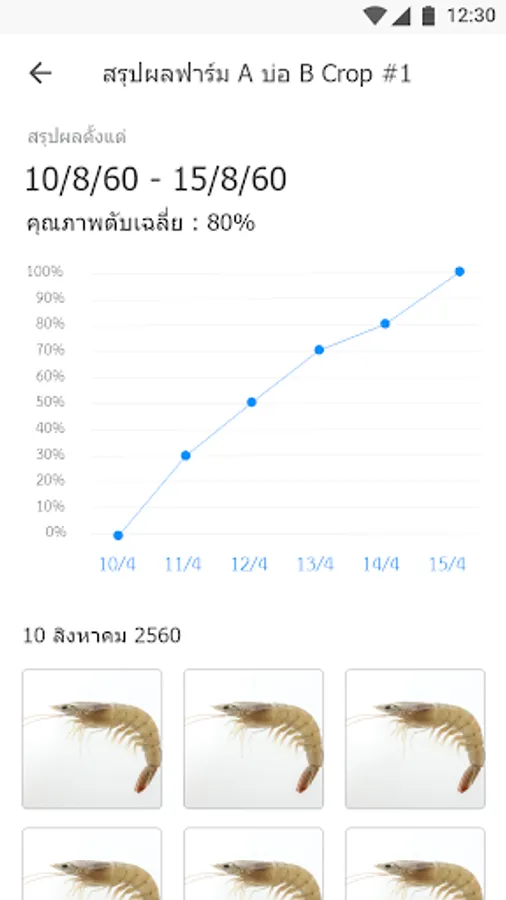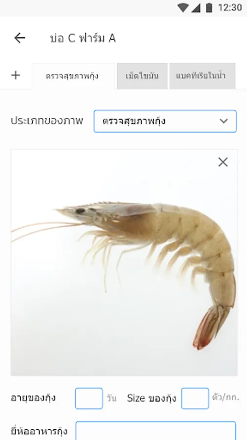 An application for creating reports. Assessment of Health shrimp And water quality in ponds fed.