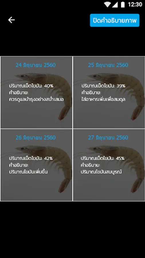 Can see the data for comparison. And assessing the quality of shrimps in ponds quickly and easily are also collecting statistical data. To analyze the results of the