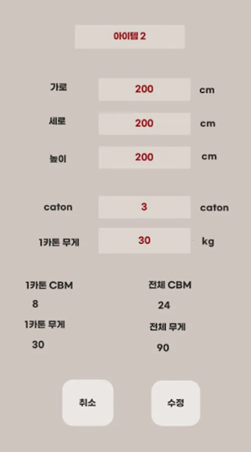 CBM can be calculated for individual articles, allowing the volume of each article to be checked and analyzed separately. The app also calculates the total CBM value for all items in that order to help you easily understand your overall cargo volume. You can also calculate the weight of each item, which allows you to more accurately estimate shipping costs.