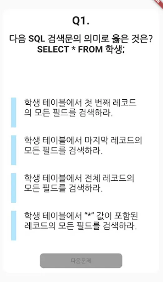 Existing questions are presented at random, so you can learn without getting bored.