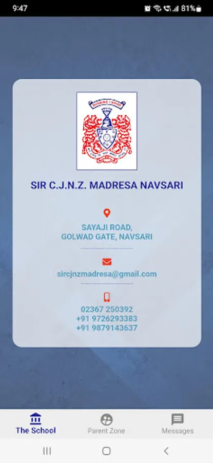This app provides a unique platform that allows parents to - (i) access important information/updates about the school, (ii) keep track of their ward records like - GR details, attendances, exam marks, results, homework, timetable, fee payments etc., (iii) receive public as well as personal messages with notifications.