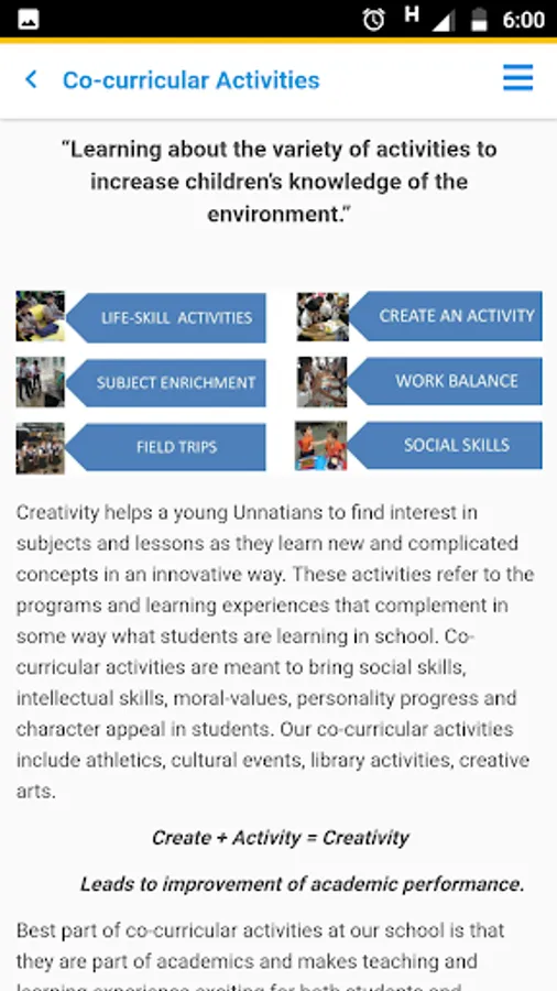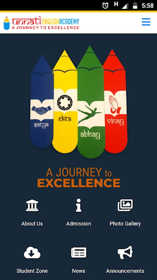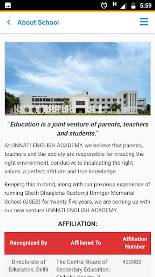 Unnati English Academy has launched its first ever android app. Download the app to remain up to date with all the current activities happenings at the school. You can even get to know about the admission procedure through the app. Also, you can witness the moments captured at every school event from anywhere. This mobile app is specially designed to give an insight of the school.