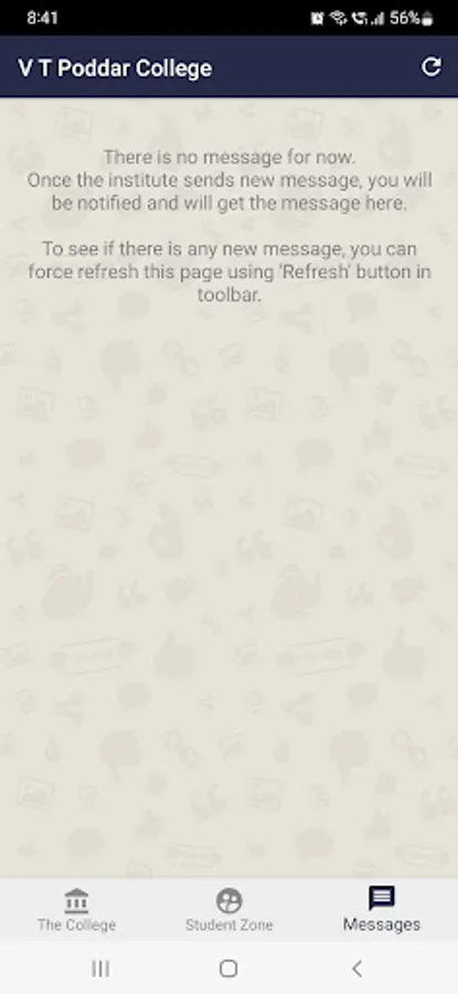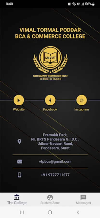 The app provides a unique platform that allows students to - (i) access important information/updates about the college, (ii) keep track of their personal details like GR record, fee payments, class and exam schedule etc. and (iii) receive public as well as personal messages with notifications.