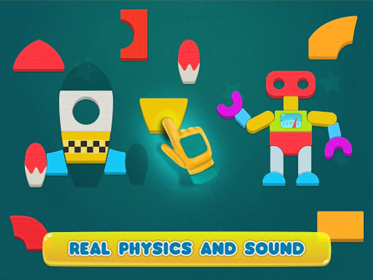 Let your kids shape different types of objects, such as rockets, trucks, houses, airplanes, unicorns, dinosaurs, teddy bear and a lot of other interesting puzzle shapes for kids.