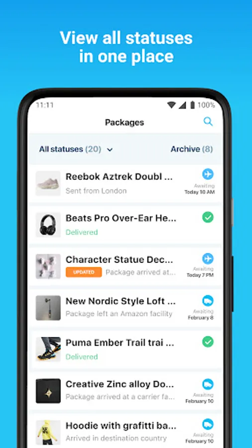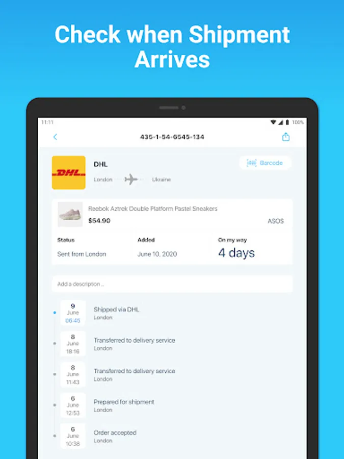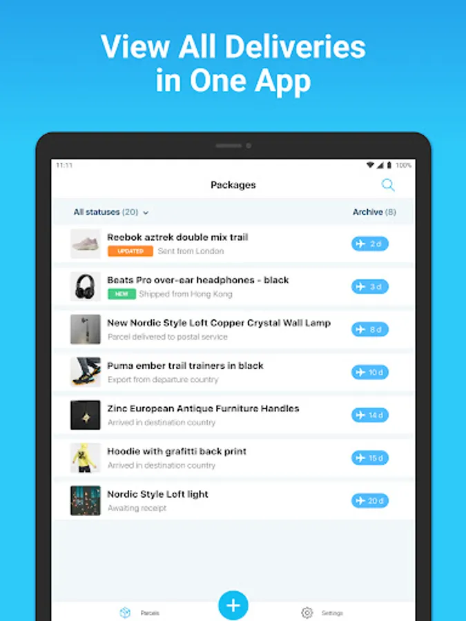 The tracking service of Pkge.net keeps all information in one place, so you can access the latest information on each parcel in one app, no matter where each of your packages is at the moment.