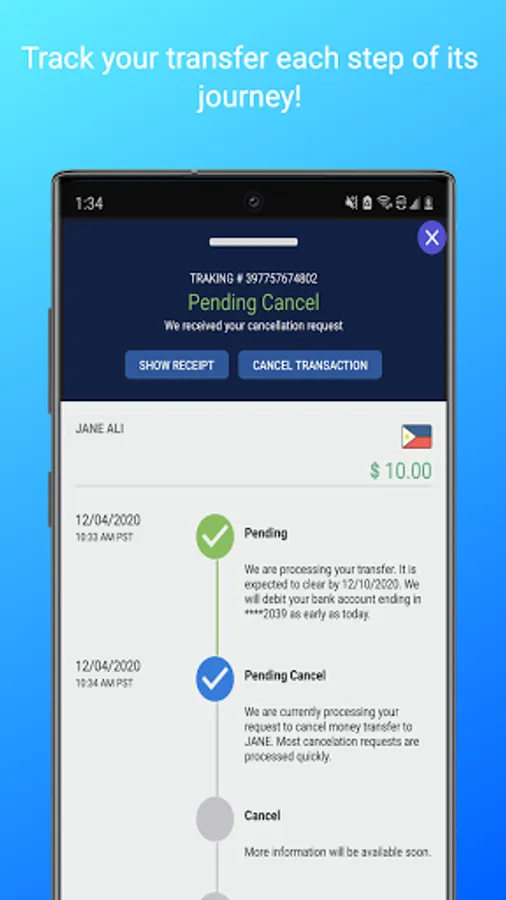 Send money to bank accounts in popular destinations such as India, Philippines and more. In some destinations, your recipient can also pickup the funds from an authorized Placid Express partner.