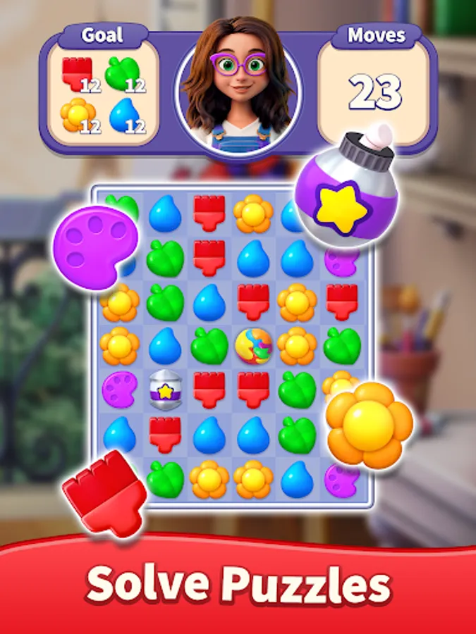 Blast your way to the top of the art world by clearing vibrant match-3 puzzle levels and showing off your painting prowess in Color Party!