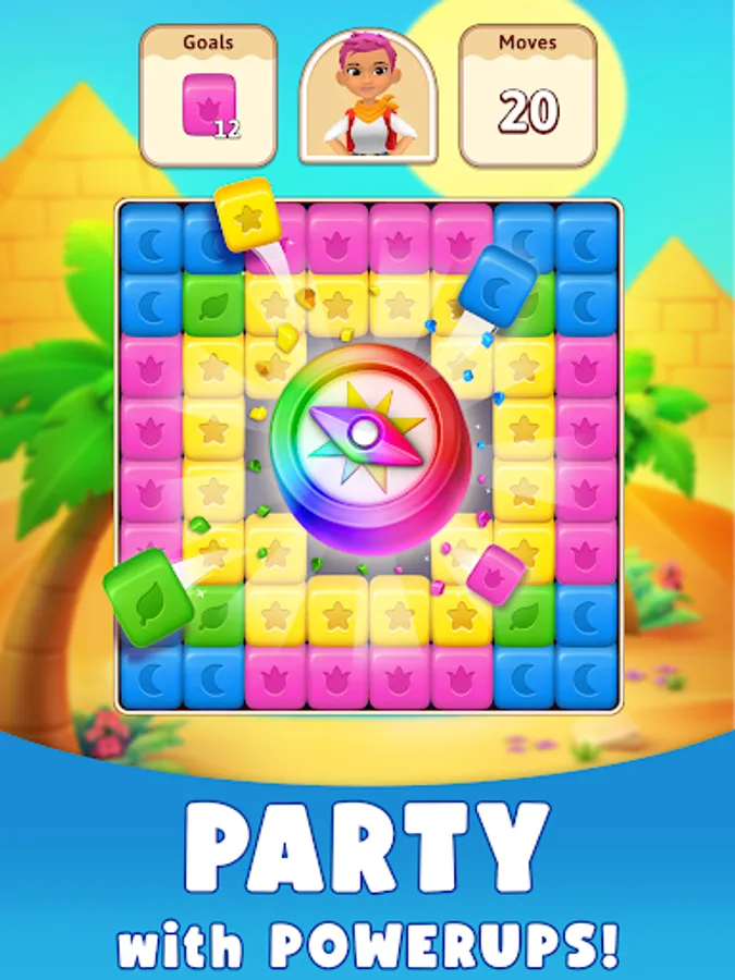 Jump in an air balloon with your customized explorer and cute pet for an unpredictable treasure hunting adventure! Tap and blast your way through fun but challenging tile puzzles, then test your luck and roll the dice on a thrilling board game journey. In Treasure Party, you never know what you’ll find - coins, shiny treasures and even a mini-game or two!