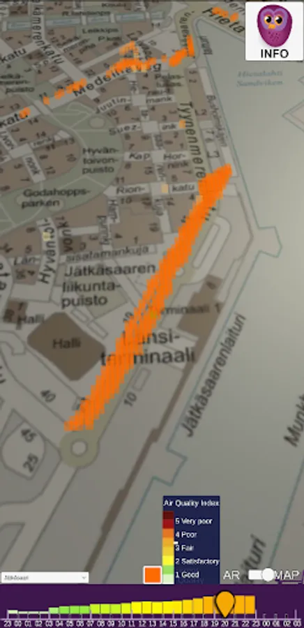 Features AR visualization of the Air Quality data from Finnish Meteorological Institute. This version is for use in Jätkäsaari by the Helsinki city info pylons with QR codes as AR anchors - more coverage coming later in spring 2021 in updates!