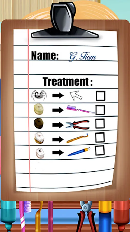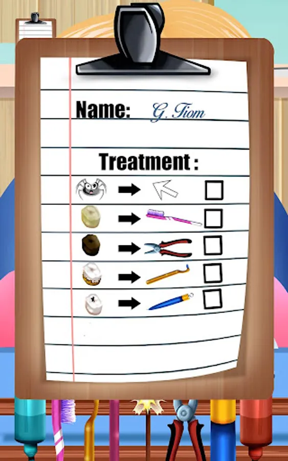 You use the tools of a real dentist. You must follow a strict order of things in order to heal your patient. His life, or rather his teeth, are in your hands. Your turn to play!