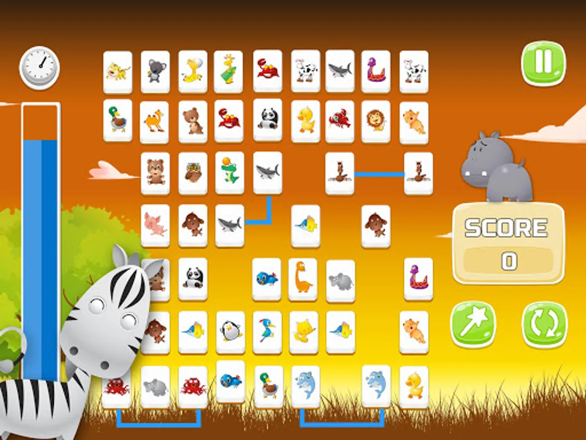 Try to remove all the icon tiles in a limited time. All you have to do is to select an animal's tile (by taping on it) and then try to match this animal to another similar one. If the tiles match, then both animals will disapear.The diffculty is that you can only connect tiles that can be linked with a maximum of 3 straight lines (and the line canno't go throug any other tile).