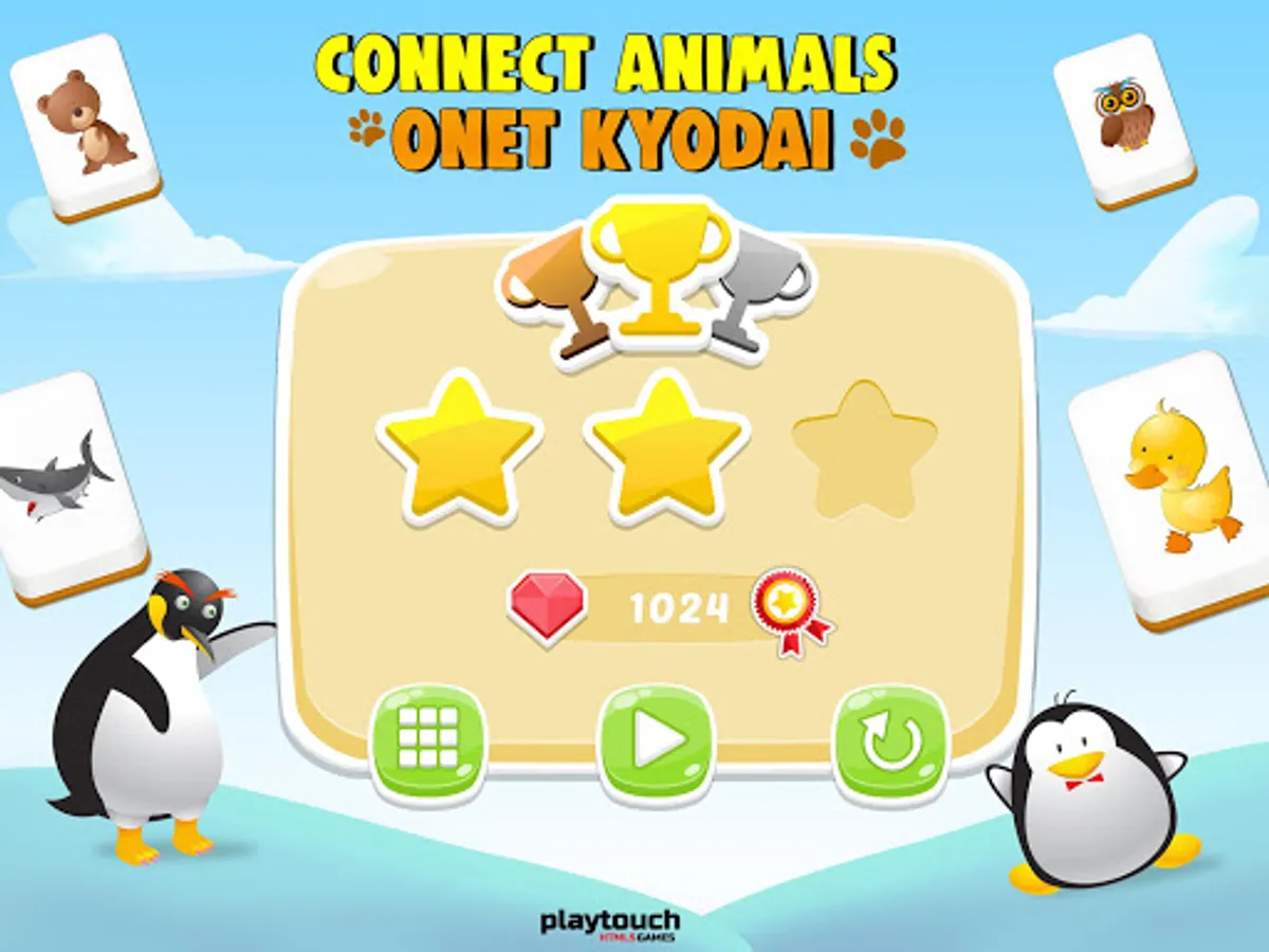 In CONNECT ANIMALS ONET KYODAI game, your goal is to find all matching pairs. It's a kind of matching game or connect game ("linker"), that is very fun to play, really challenging and very addictive. If you like cute animals and if you like puzzle games, you will love CONNECT ANIMALS ONET KYODAI, by far the best deluxe version of the Onet type games.