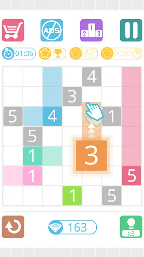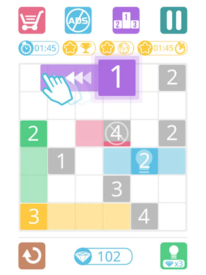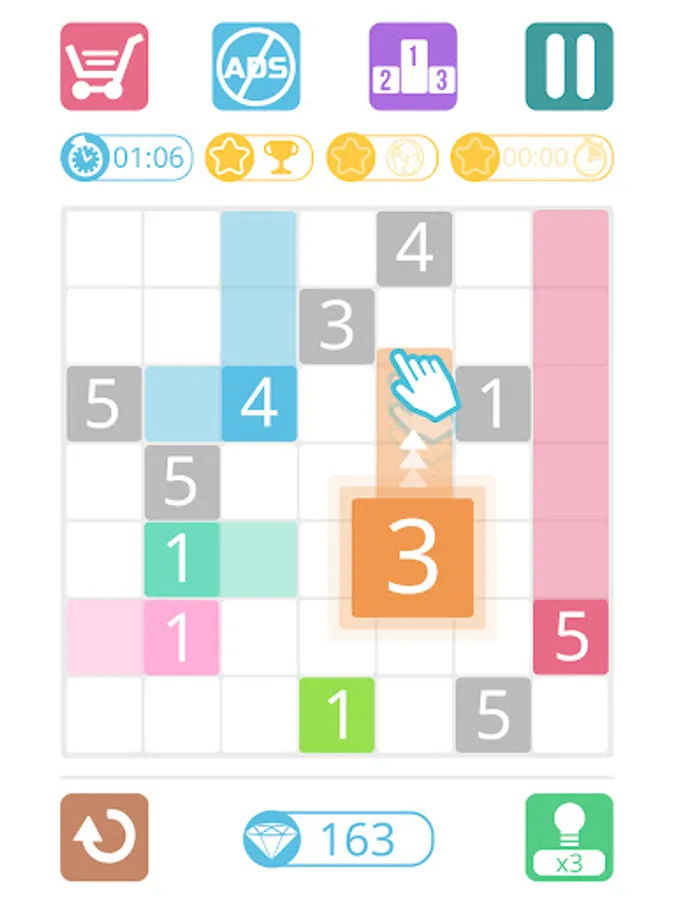 The concept of this game is super simple, you must fill completely the grid with colors. Just drag the color from 1 number in the grid. The number indicates the number of boxes you should fill with this color.