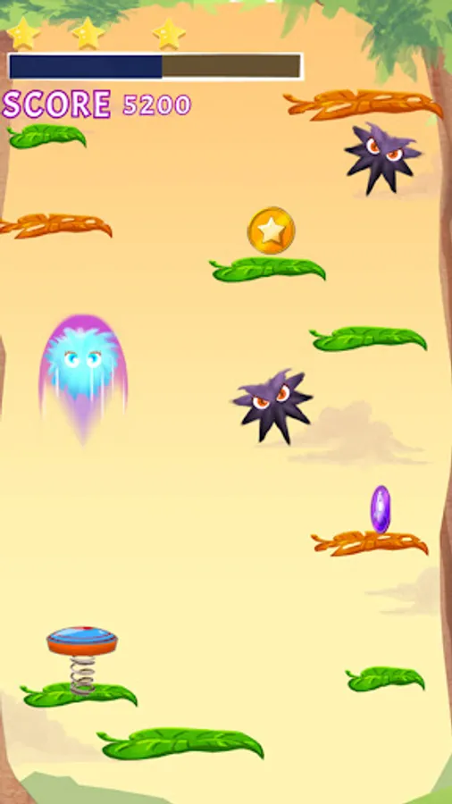 The goal is to reach the top of the forest on each level. You must jump from platform to platform without falling to the bottom of the screen (the platforms are represented by leaves).