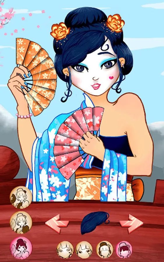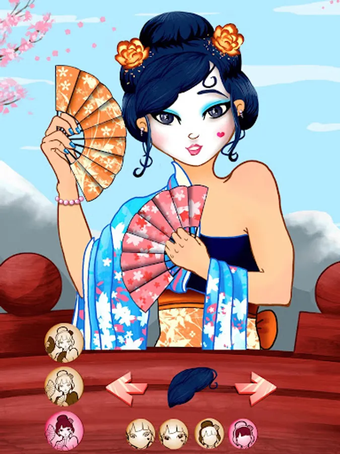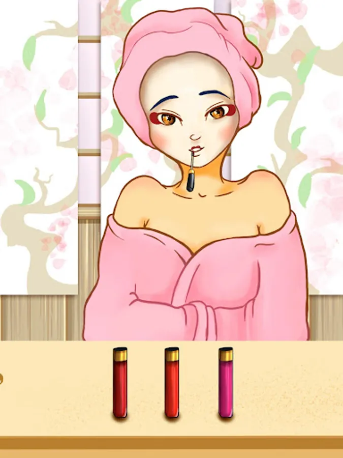 Geisha make-up & dress-up is a wonderful creative game. A Japanese atmosphere in a girly game. Just perfect !