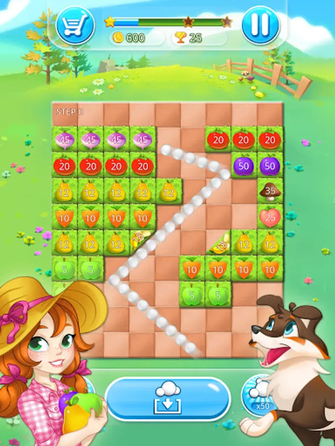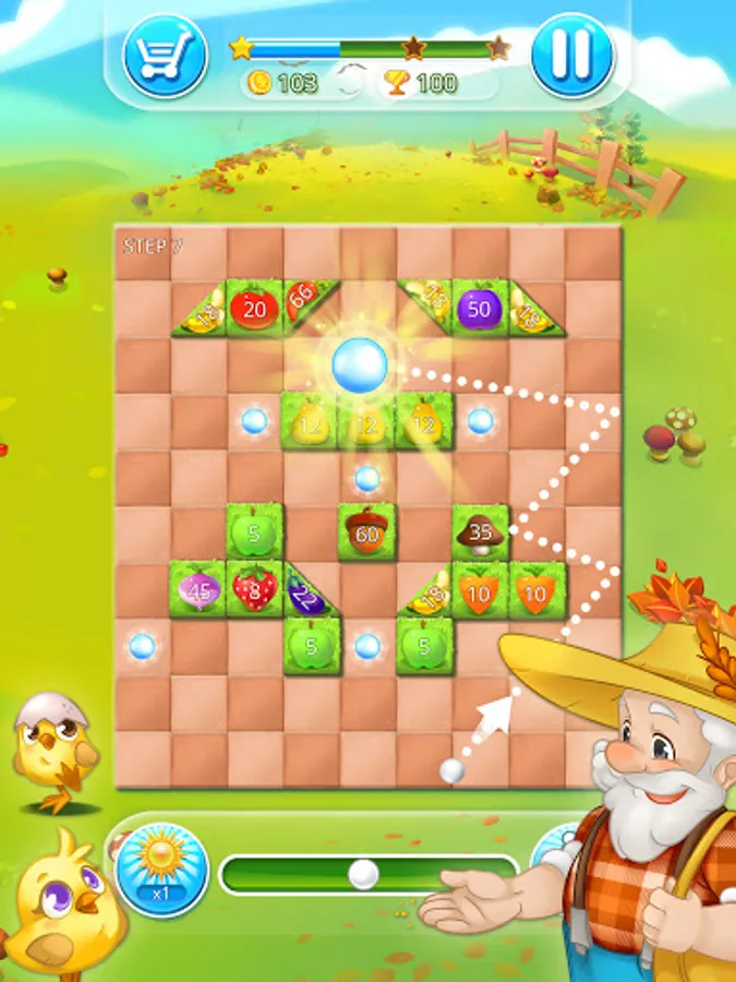 Happy Farm - Harvest Blast is a fun arcade game in which you act as a farmer and your goal is to collect all fruits in the vegetable garden. Just shoot balls to the parcels to get your harvest. Tomates, mushrooms, potatoes, hazelnuts, carrots, onions and more are to harvest in hundred of levels. As the difficulty and the challenge are increasing you'll get bonuses and extras to help you in your quest. Agriculture is not an easy world so be smart and play wisely. The atmosphere of the game is so frenzy with all these animals, the friendly characters, the magnificent fruits and vegetables, that you will play and have fun for hours. Are you ready to play the most fun and cute farming game ?