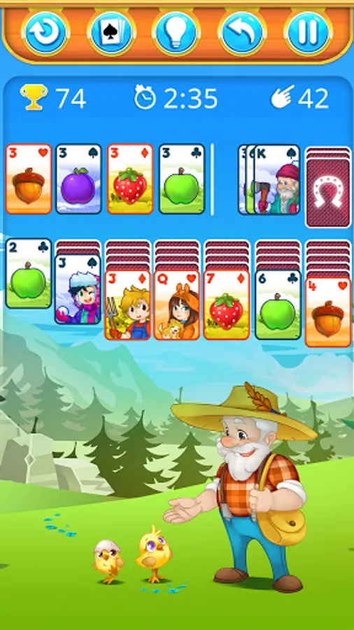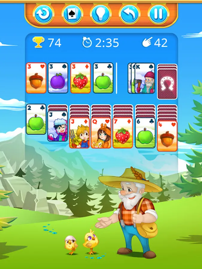 HAPPY FARM SOLITAIRE is a very nice classic solitaire, with no complex gaming mechanisms that you can find in new kind of solitaire games nowdays. In HAPPY FARM SOLITAIRE, just relax and enjoy playing a solitaire game with amazing and so cute graphisms.
