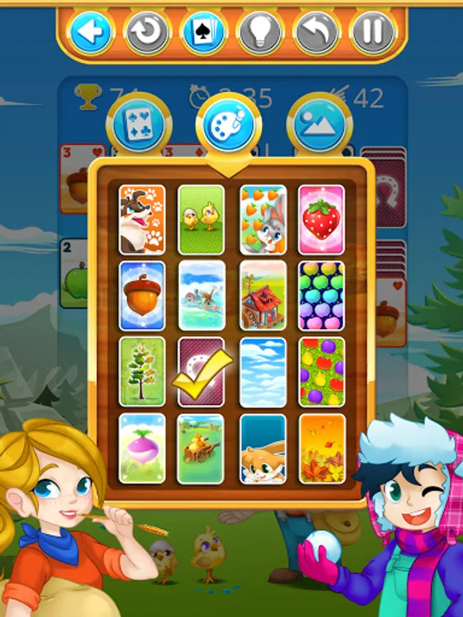 If you like cards games and solitaire games, you will love HAPPY FARM SOLITAIRE with its beautifull design.