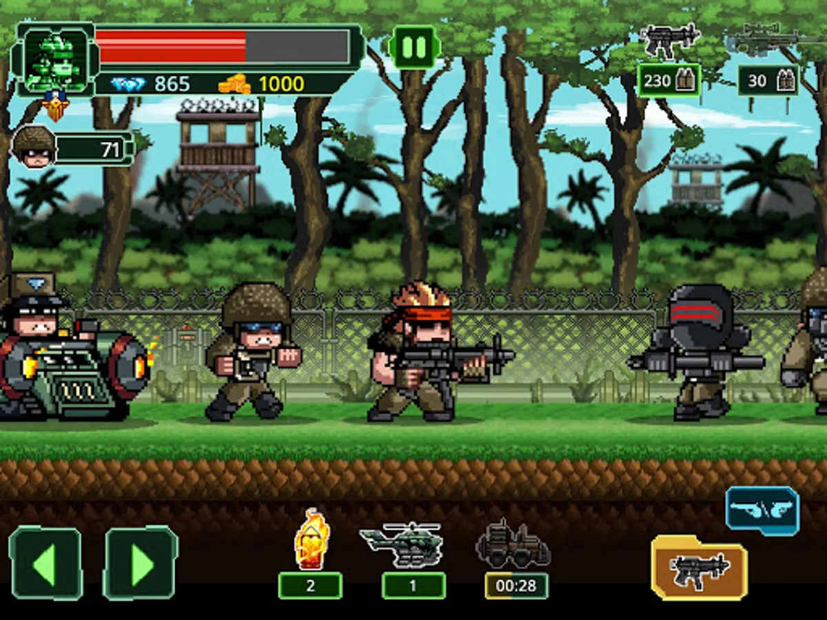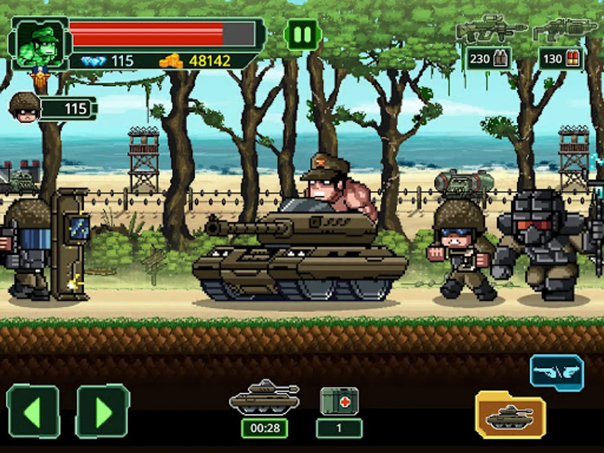 Get your metal guns ready and engage in this shooting and action arcade game. It's time to call your soldiers to do their duty, as an army of renegade slugs has invaded an island and took control of it. Play with 4 brave soldiers, an epic squad of glorious commandos, heroes of previous war conflicts, choose your weapons, your vehicules (tanks, mechas...) and attack the ennemy in destructing battles.