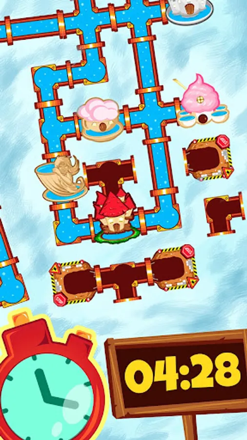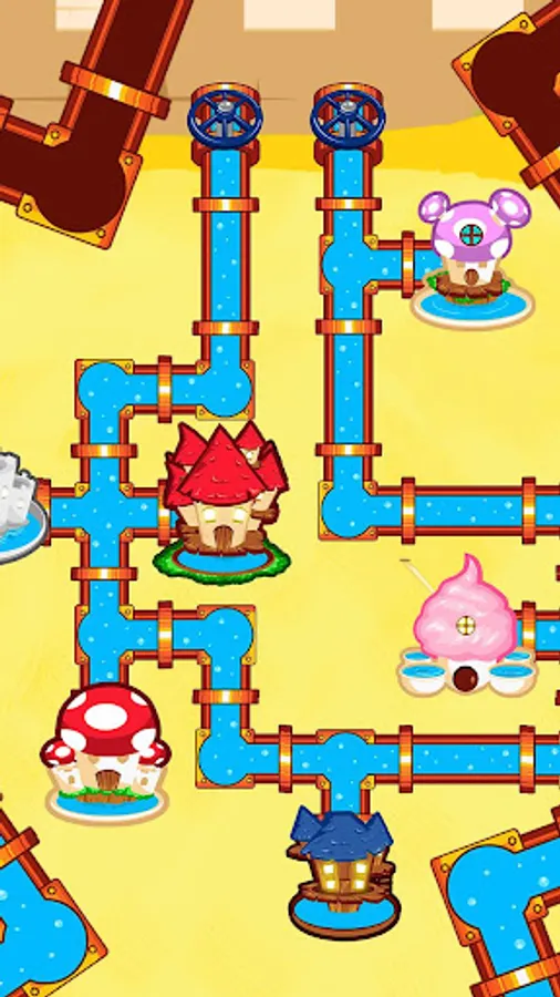 The gameplay is super simple. You just need to turn around the pipes, to connect them from the water reserve to the different elements on the screen that need water (public fountains, houses, lakes, swimming pools...)