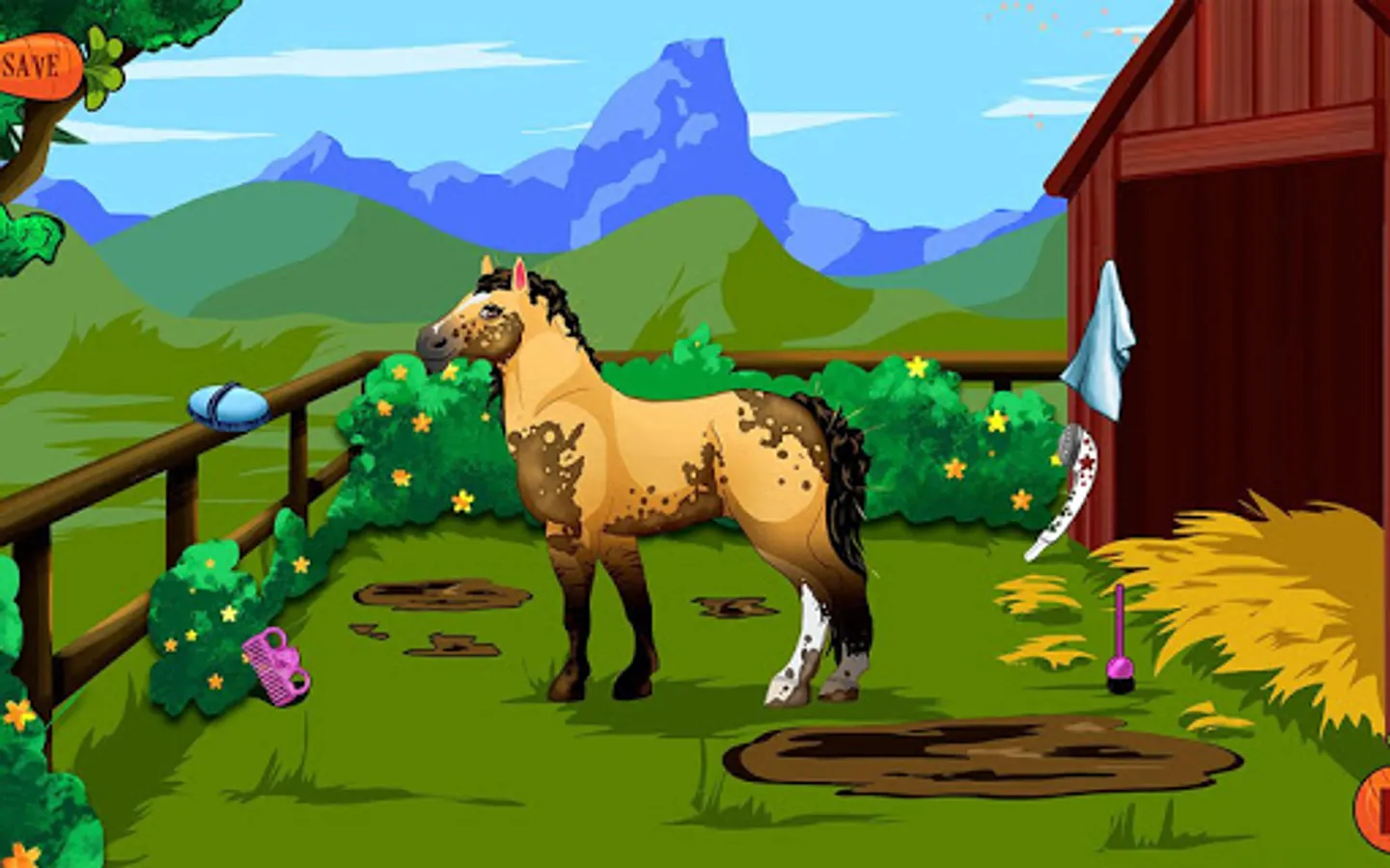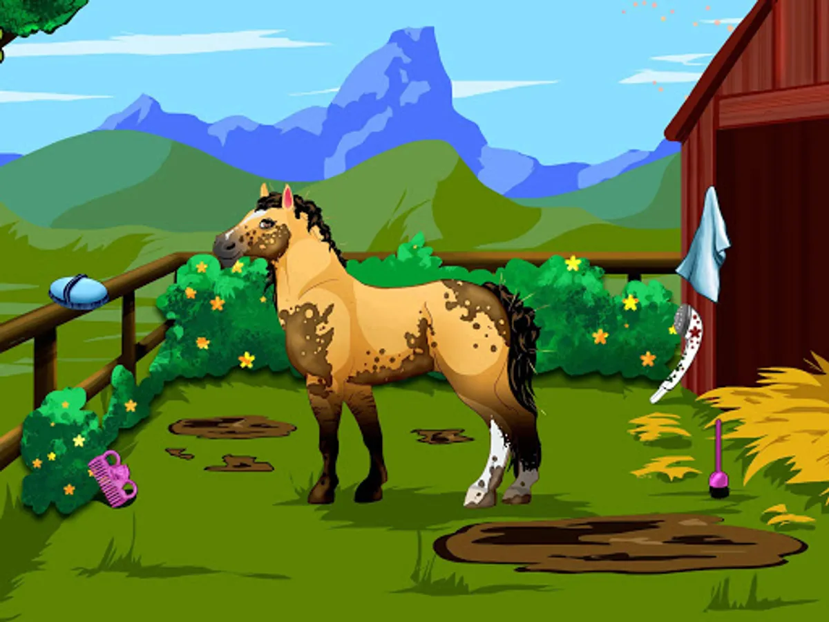 Pick in the highlighted objects and drag them on the horse to perform an action. Follow steps one by one, and then you can finish the game with a little make up.