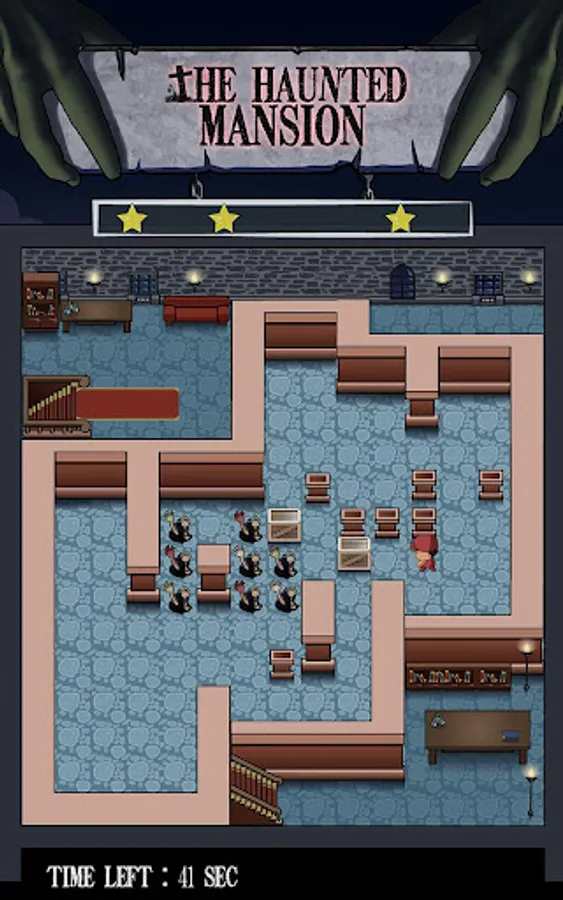 Inside The Haunted Mansion, a young man is strongly regretting the fact that he didn’t stay at home today. Chased by a horde of zombies, he barricaded himself in one of the multiple rooms of the house. But his safety is not guaranteed for long: the creatures are breaking the rotten wood floor and try to catch him with their hands. There’s only one solution to help him: you will have to barricade the floor with crates before leaving for a new room.