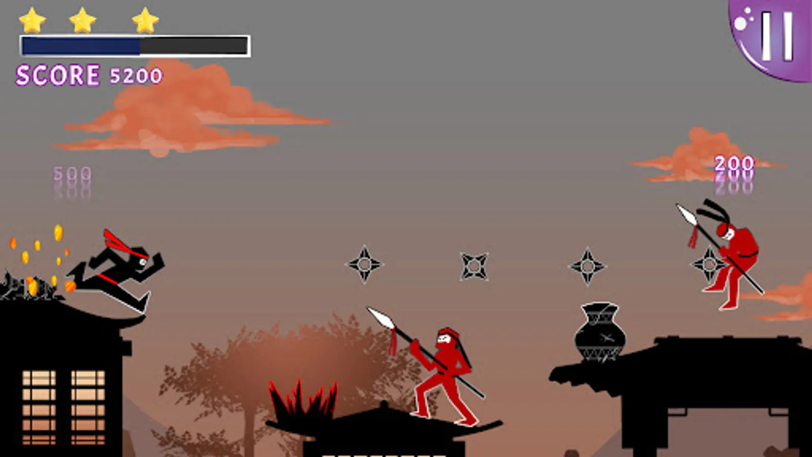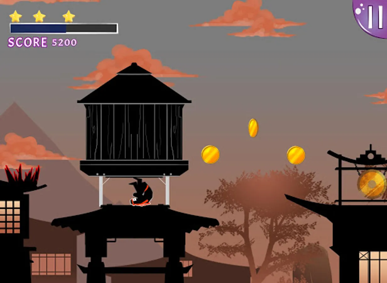 Your goal is thus to get to those gongs which are at the end of each level. You’ll have to jump from platform to platform without falling but also to evade the different obstacles that you’ll meet and kill your enemies with your shurikens.