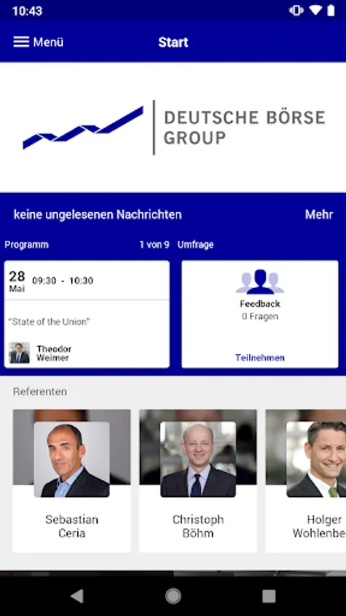 The Deutsche Börse Group Events App is the mobile app for all invited and registered participants of internal and external events of the Deutsche Börse Group.