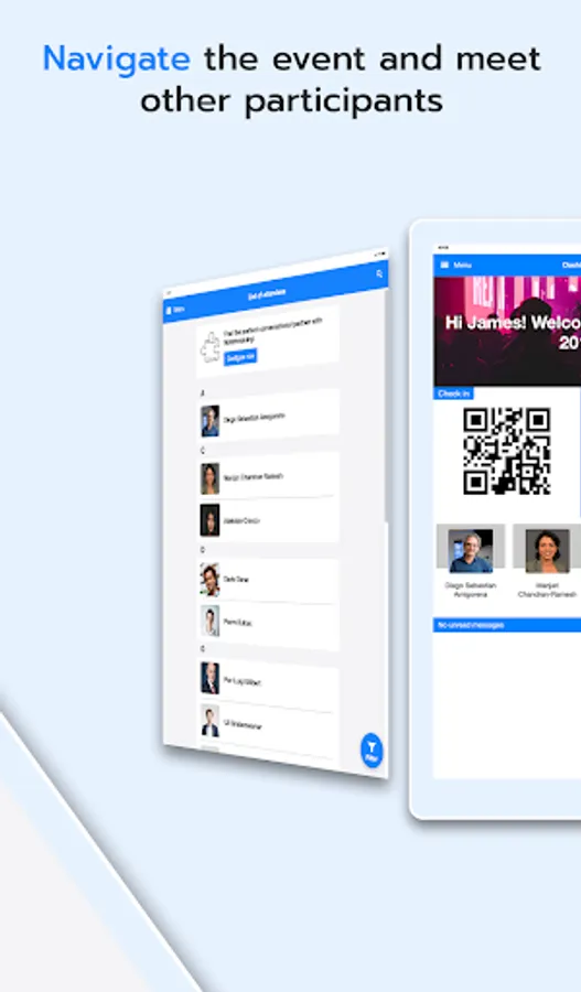 Using the participants’ profiles, the app will provide you with networking opportunities. You can find other participants quickly using the participant lists, along with important details like company and position.