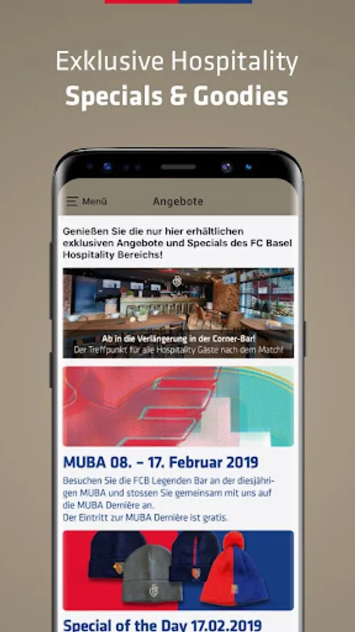 Enjoy exclusive hospitality specials and goodies available only here in our hospitality app! At each match there is also a "Special Of The Day" on you, which only you as a hospitality app user get that day.