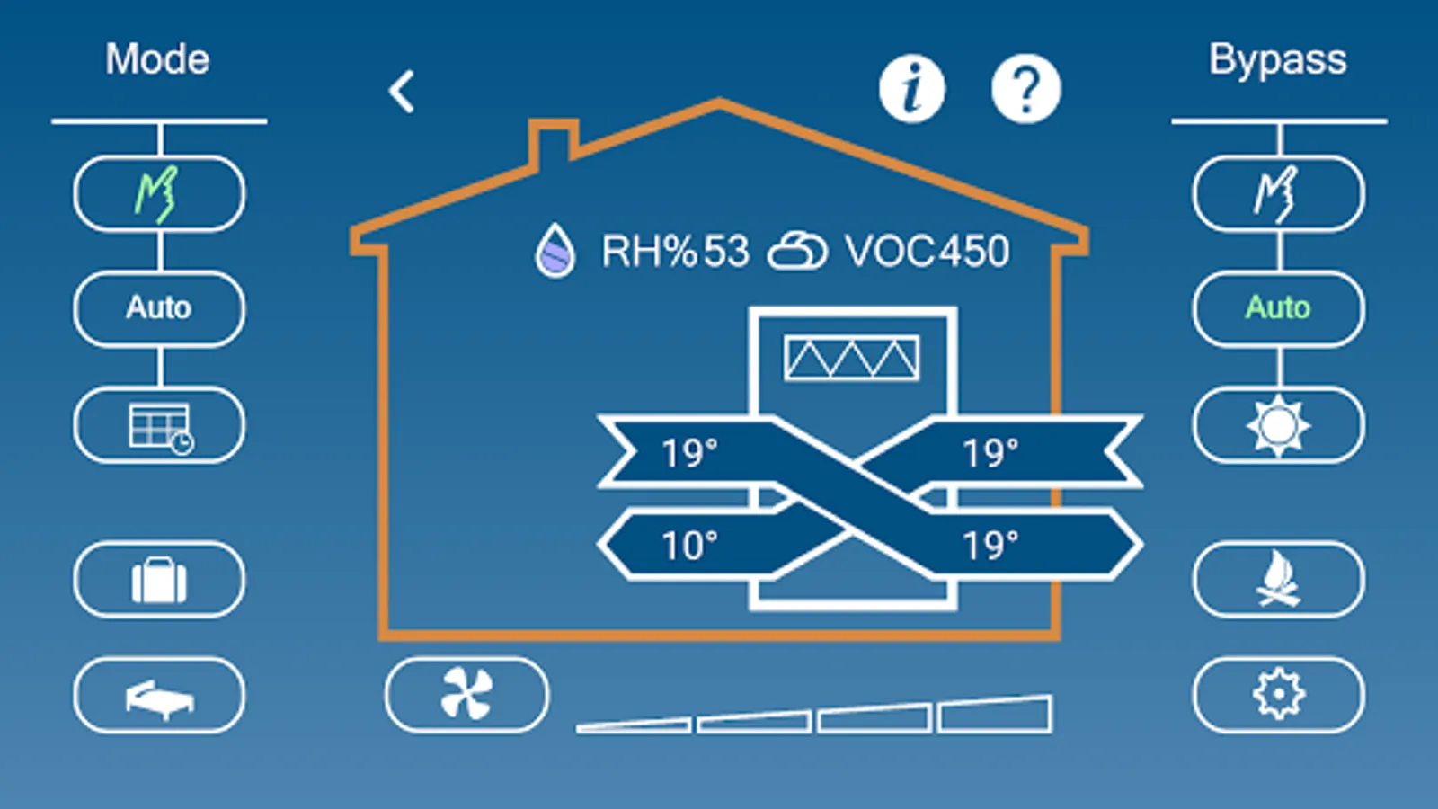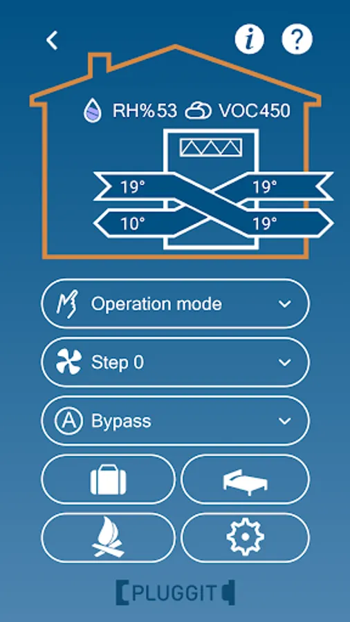 The Pluggit iFlow app allows the representation, adjustment and control of Pluggit Avent ventilation units Avent P190, P310, P460 (AD160) easily on your Smartphone.