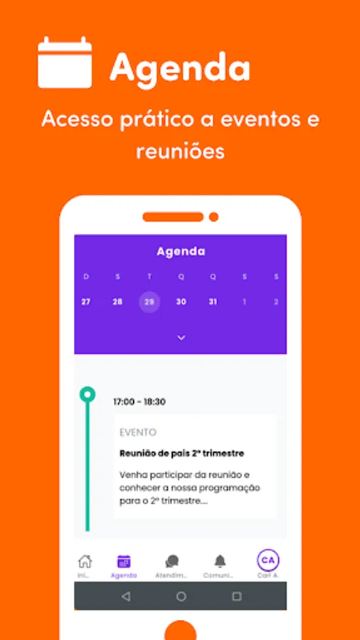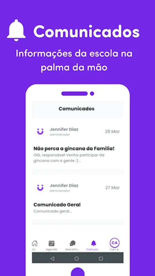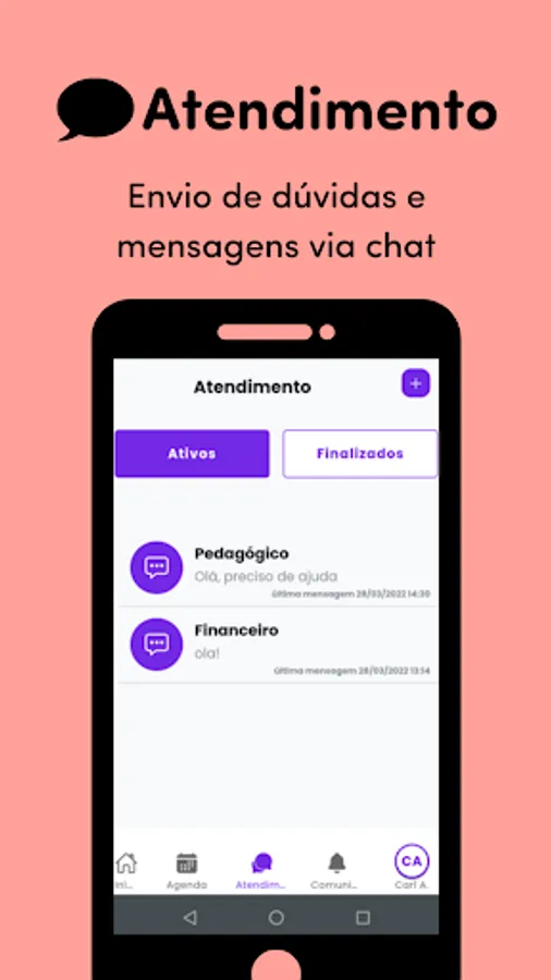 Aimed at those responsible for Plurall's partner schools, the application offers practical access to the school's communications, events and meetings. In addition, the person in charge has access to the interactive chat within the application.