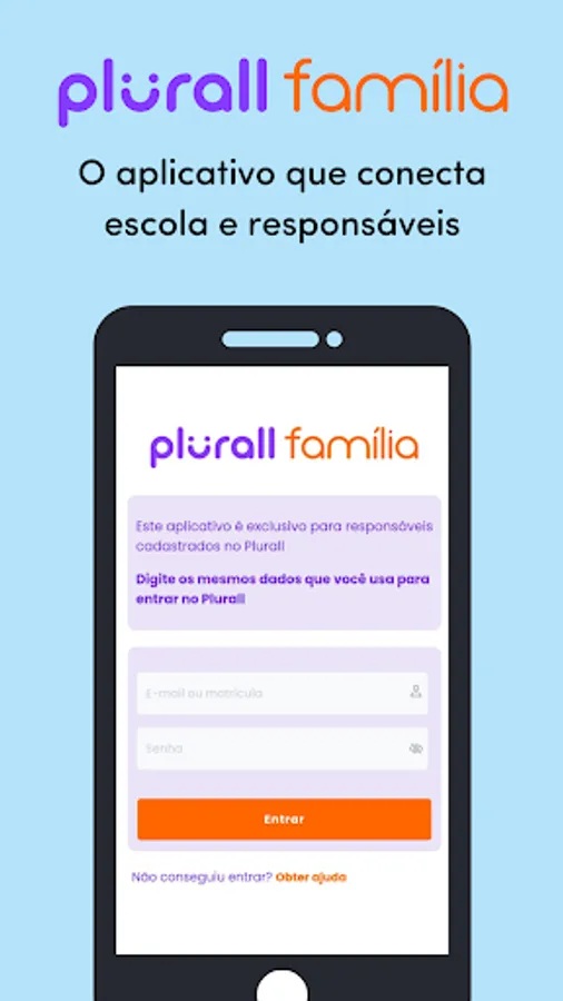 To access the Plurall Família application, the person responsible must be registered with Plurall and must use the same login and password.