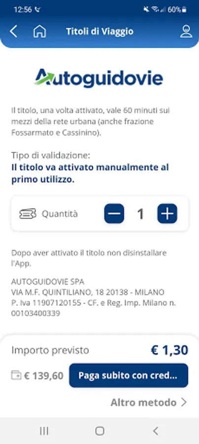 New: Purchase STIBM tickets in the Milan area and IVOL season tickets, in addition to travel tickets valid in the Municipality and Province of Pavia, on the K lines of the Province of Cremona, for the urban area of Crema (MioBus) and Paderno Dugnano, for the line Z405 from / to Treviglio, for the M Crema - Bergamo line.