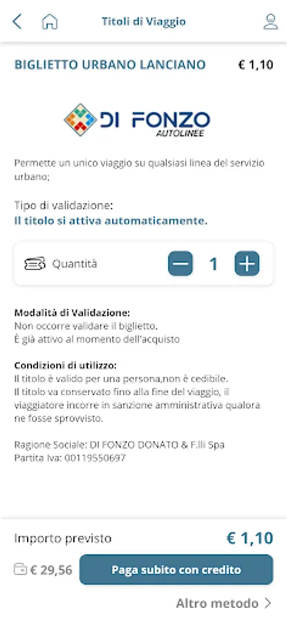 With the app you can plan your trip, consult timetables, search for the nearest stops and all information on the service. You can also buy urban and suburban tickets, and renew your season ticket, paying by credit card, Masterpass, Satispay, Pay with PostePay or by recharging your credit also with SisalPay.