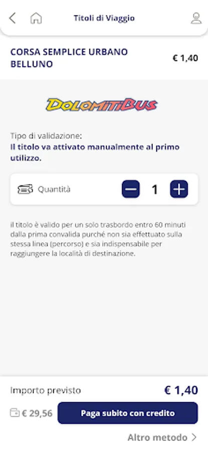 2. ticket purchases or valid carnet Dolomitibus on line by credit card upon registration