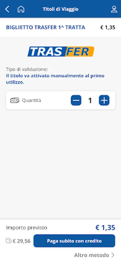 You can pay by credit card or by loading the "Credit Transport" through Postepay, Satispay, Sisal, masterpass or credit card.