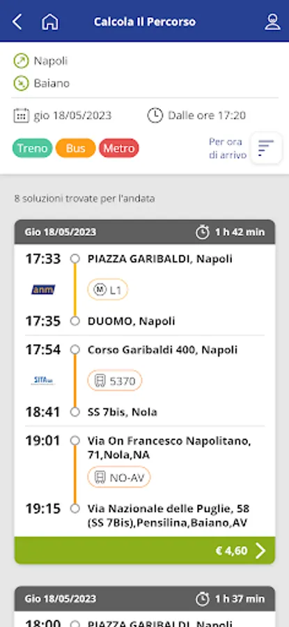 organize your trip, inserting the point of departure and arrival, and seeing all the solutions you can choose from, including integrating multiple transport companies