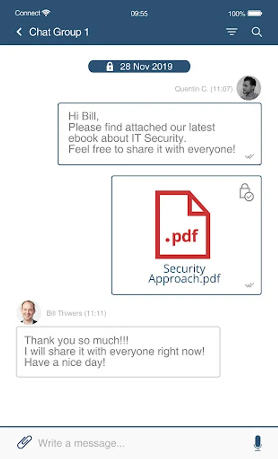 Connect is instant encrypted messaging.