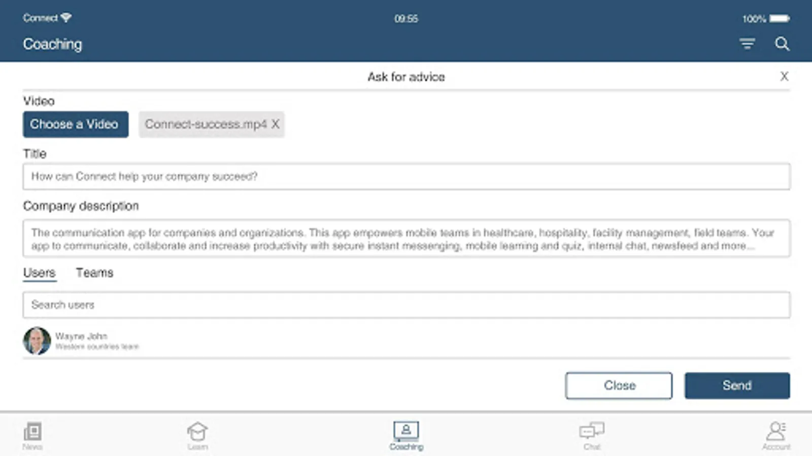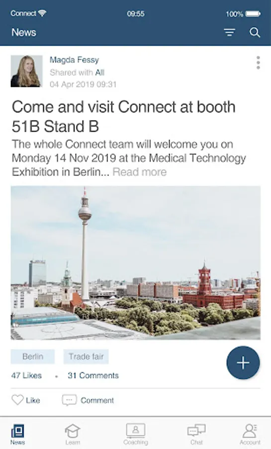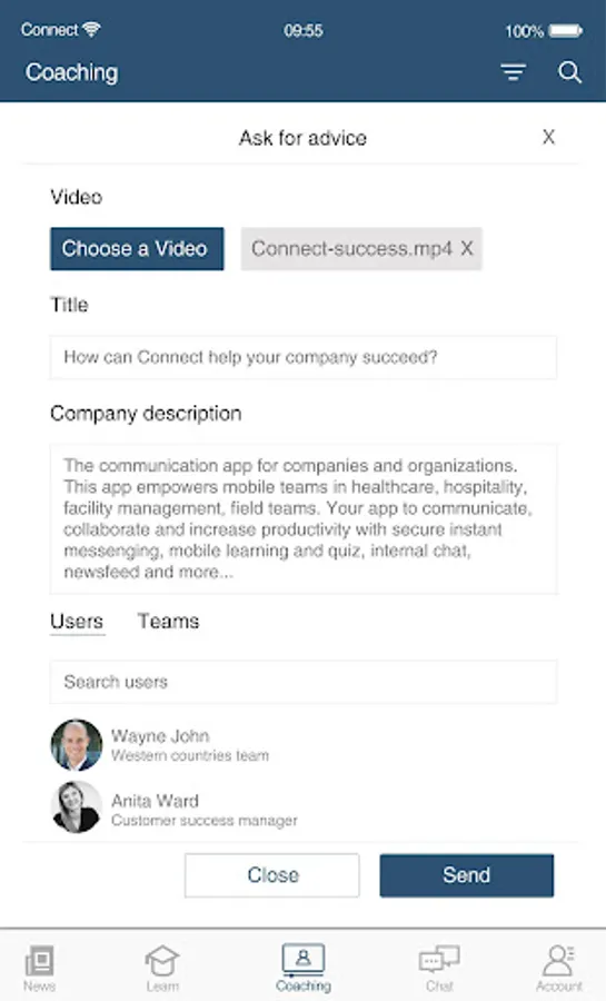 The Connect app is a productivity app engineered specifically for the mobile workforce. Offering a secure meeting place to work together in real time, the app allows you to exchange important information to keep teams informed, individuals involved and give a sense of recognition.