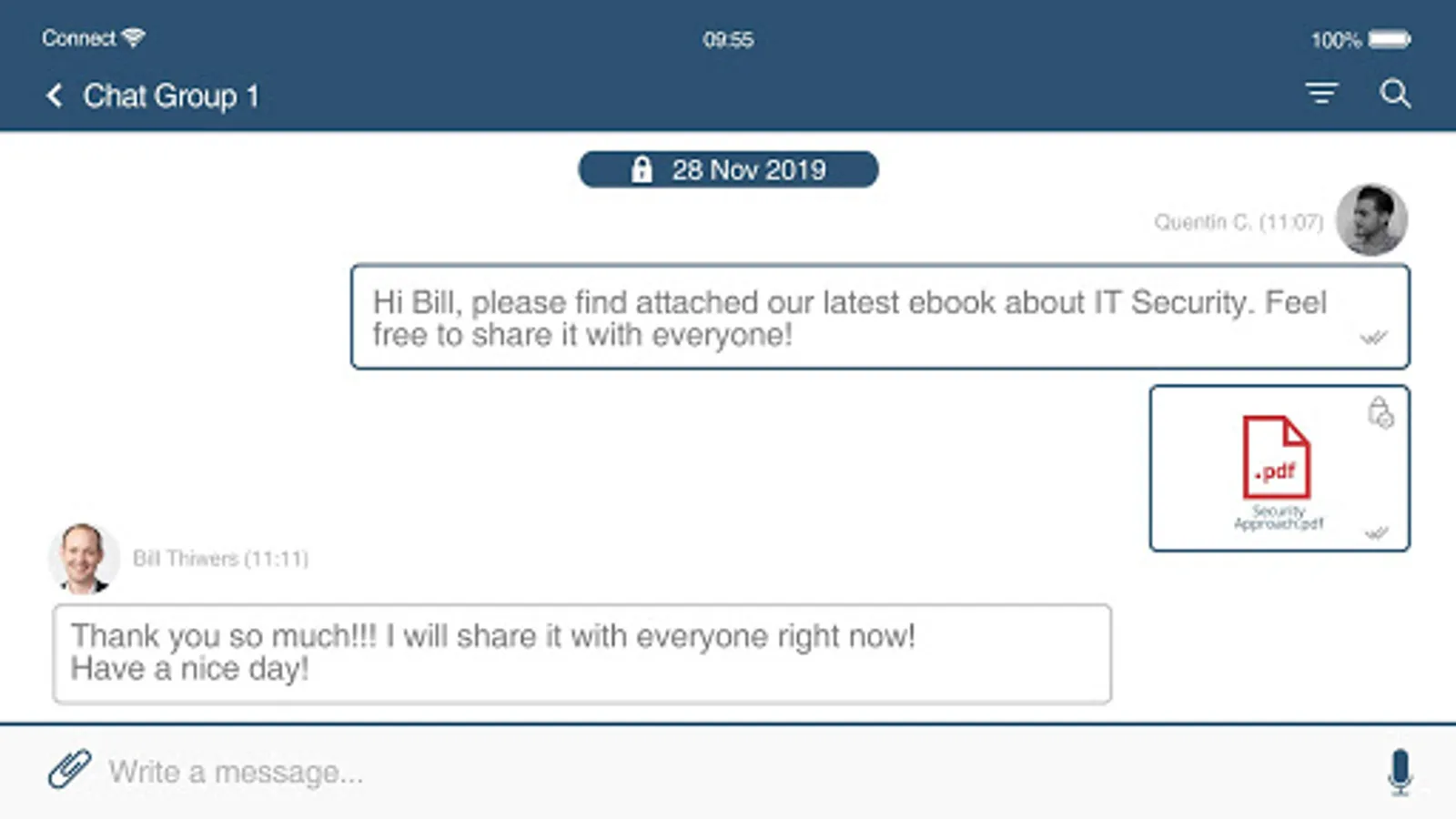 An alternative to email, the Connect chat channel enables team members to send and receive secure messages to one another.