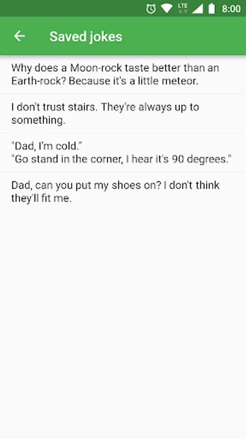 A simple client that lets you browse ICanHazDadJoke.com. Find the perfect joke for every occasion or brighten up the day with a random joke. If a joke catches your eye, you can share it right away with your family and friends, or save it for later.