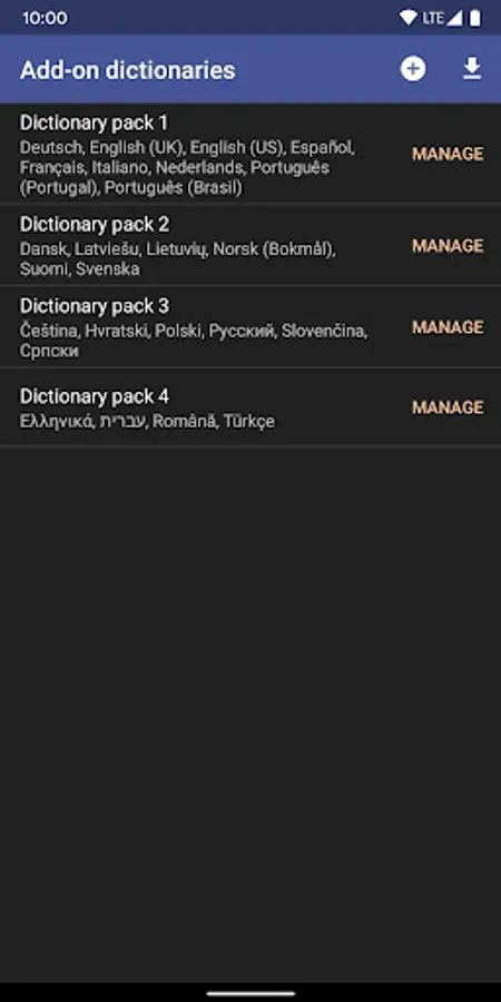 This dictionary pack can only be used with keyboards published by this developer. Once installed, it will provide suggestions and corrections for the following languages: