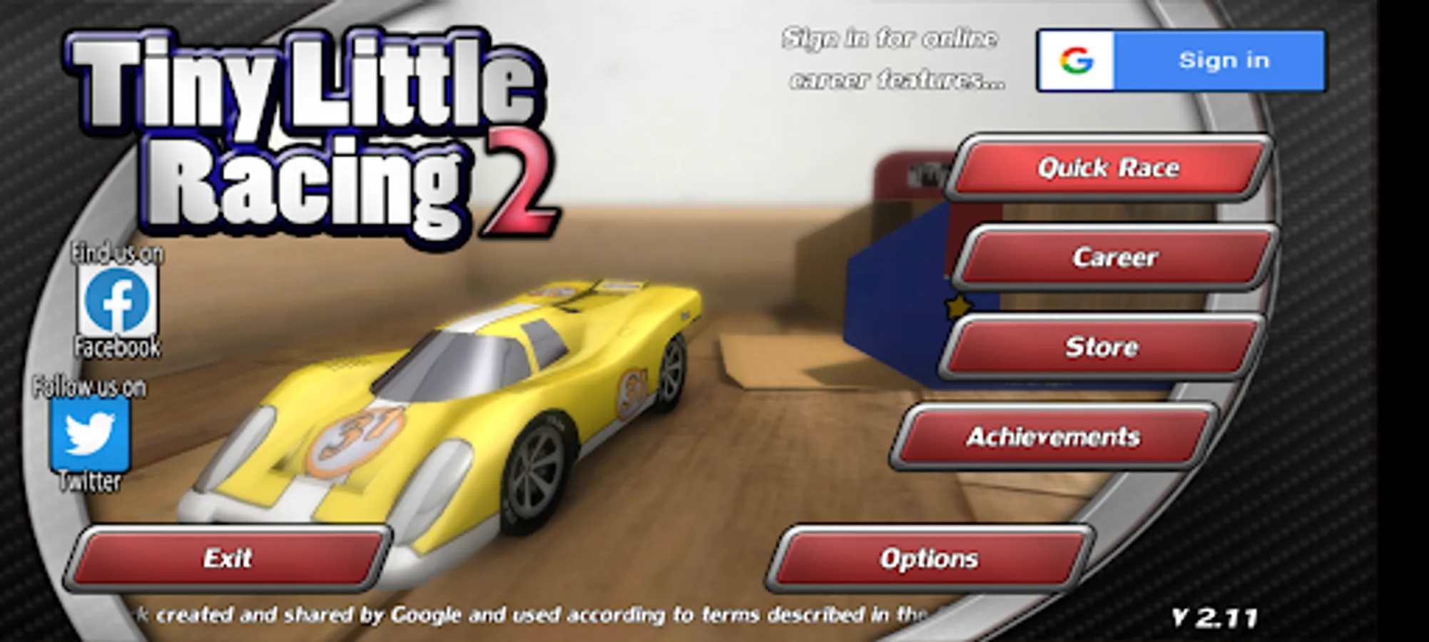 Tiny Little Racing 2 is a free action racing game. Race against computer opponents or against friends in split screen (requires 2 connected controllers and a big screen device) or LAN multiplayer. Google play game services support with Leaderboard and achievements. Race with more than 30 cars (some cars require purchase) on 28 tracks across 6 different locations.