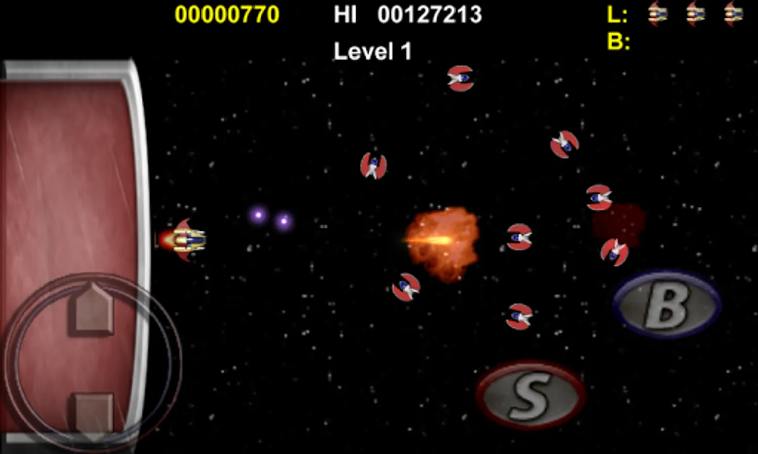 Shoot them up classic arcade style spaceship game. Fight against fleets of enemies to save our planet from alien invasion. 50 levels of arcade shooter action. 3 levels of free move action.