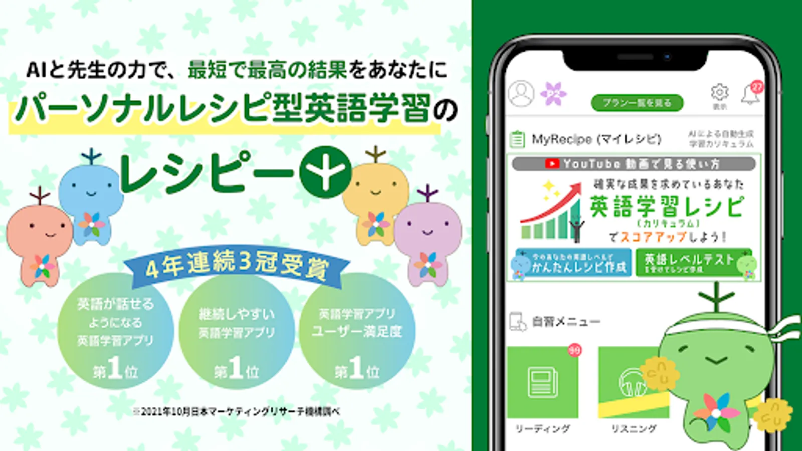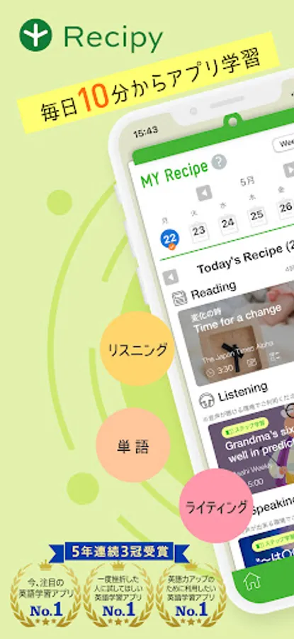 It is an English learning app that has won the [Triple Crown] in English learning apps for 5 consecutive years. “Right now, the No. 1 app for learning English” “No. 1 app for learning English that people who have been frustrated should try” “No. 1 app for learning English to use to improve their English skills”