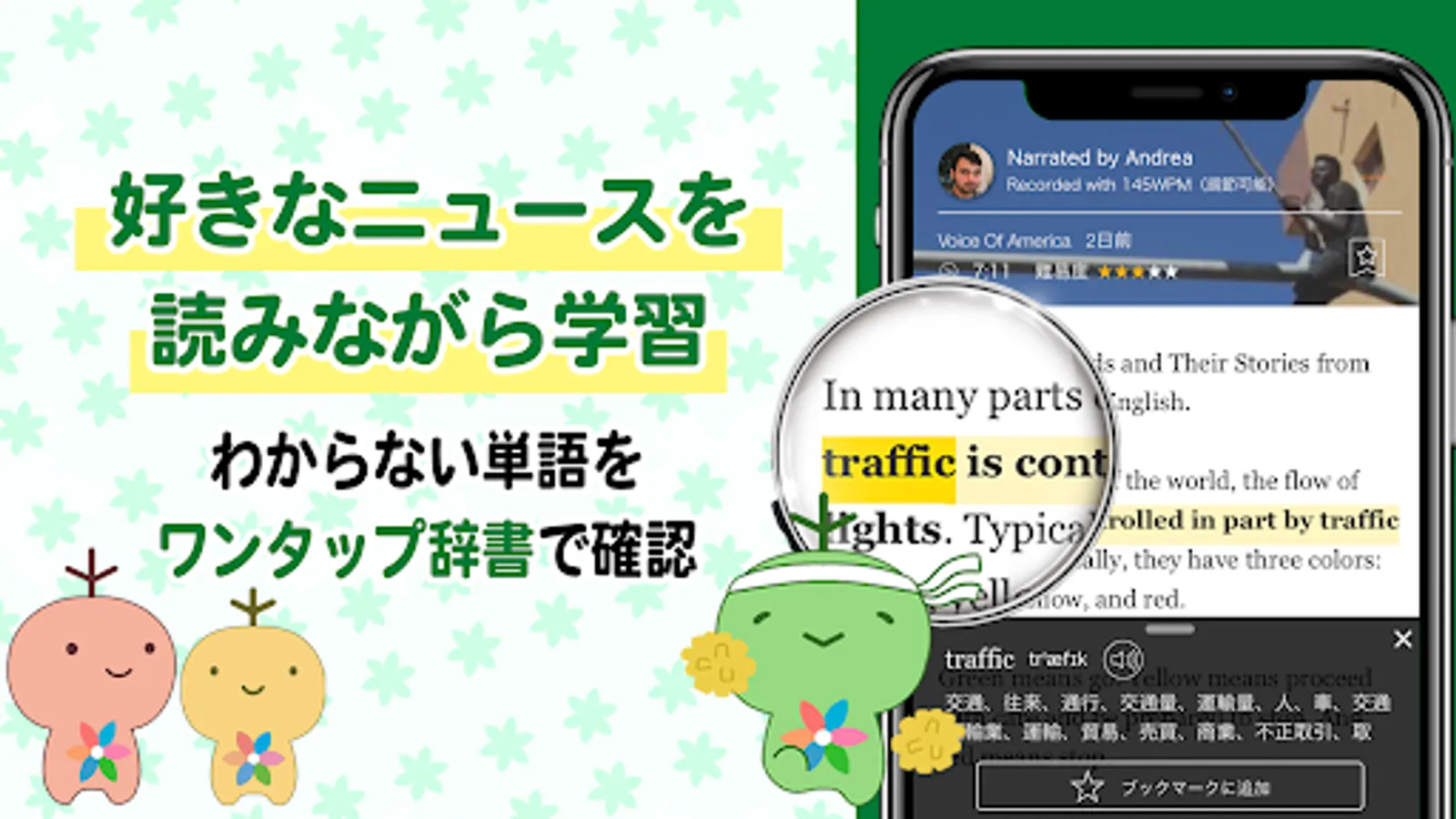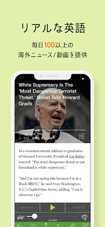 Improve your TOEIC/TOEFL score using your favorite genre of English news! In addition to learning English words using a personalized English word book, listening learning, AI English conversation and English grammar learning!