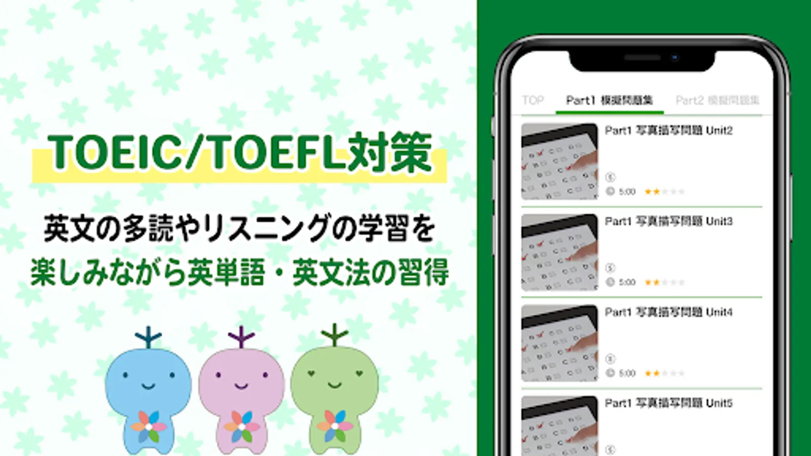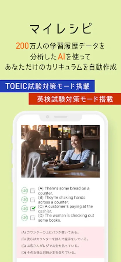 I was studying using TOEIC/TOEFL English textbooks and long English sentences, but I couldn't continue, so I want to prepare for TOEIC/TOEFL with an English learning app.